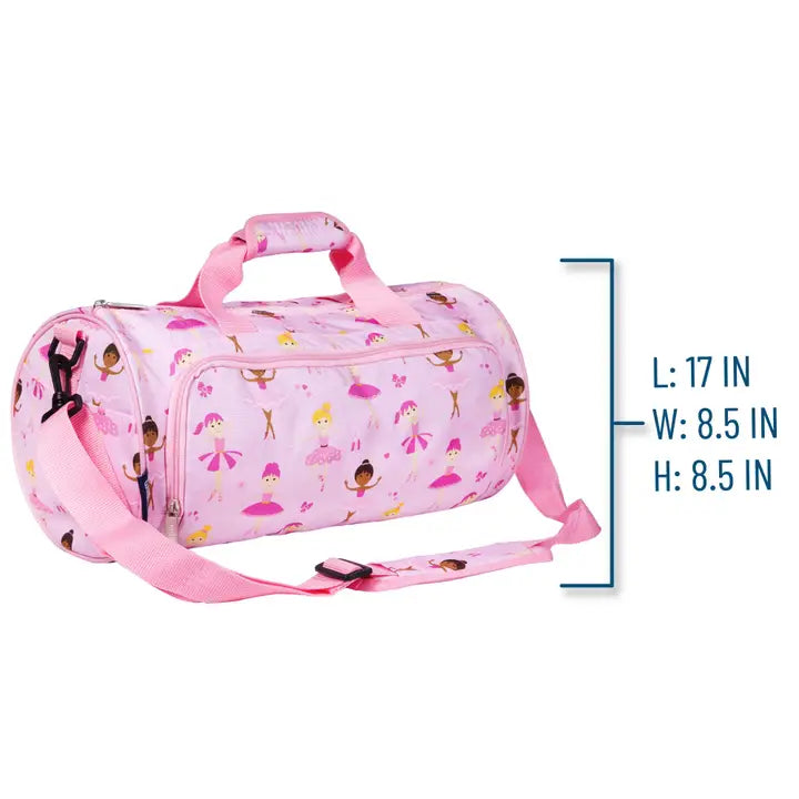 Product info: 17" x 8.5" x 8.5" Lightweight Spacious, moisture-resistant interior Zippered front compartment Durable exterior Removable, adjustable shoulder strap Top carrying handle