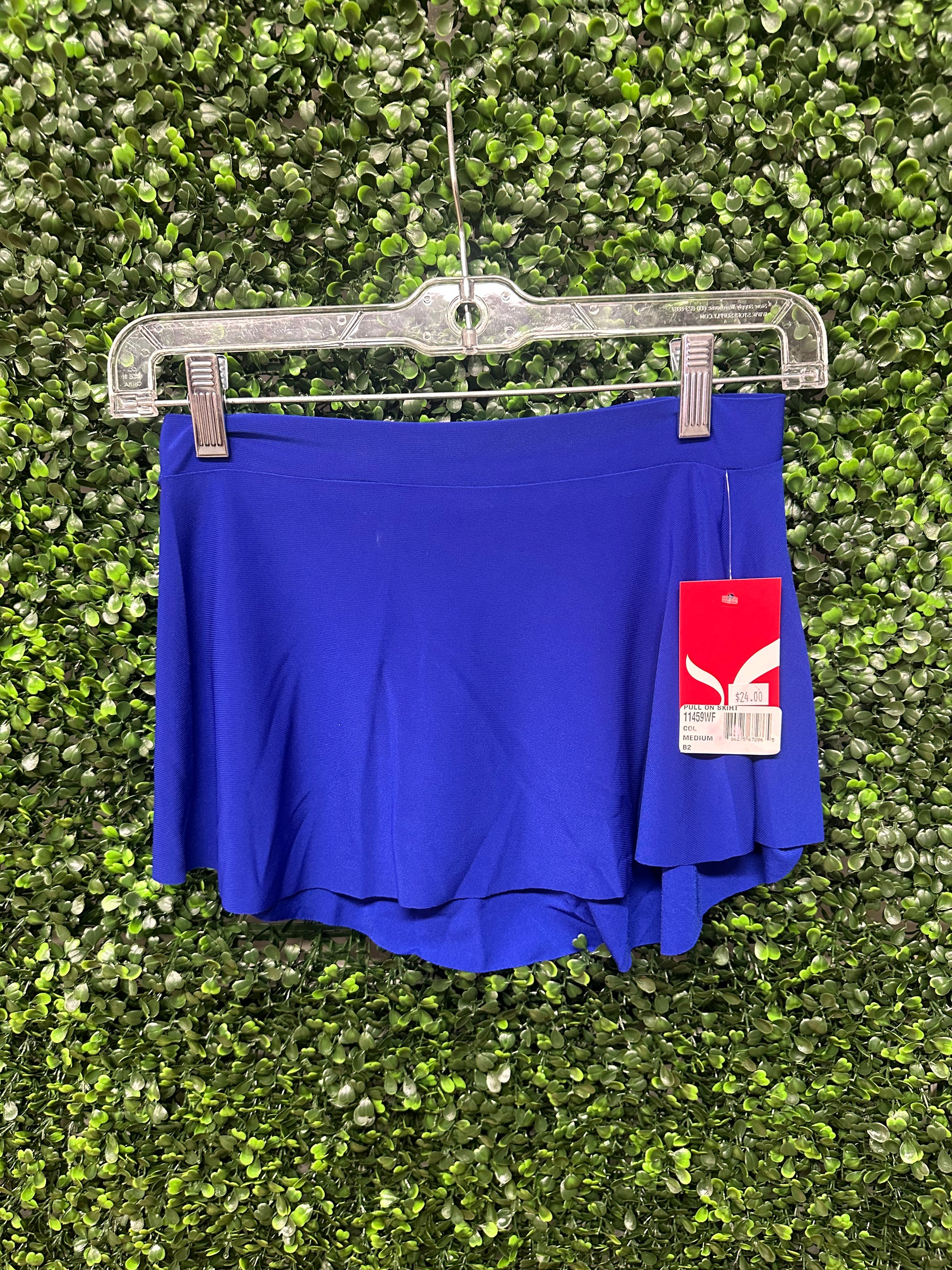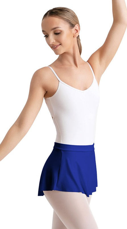 The soft, pull on waistband stays securely in place during any routine. Curved hem puts a new spin on the classic pull on skirt. This skirt will feel effortless when layering over leos, dance briefs and boyshorts.