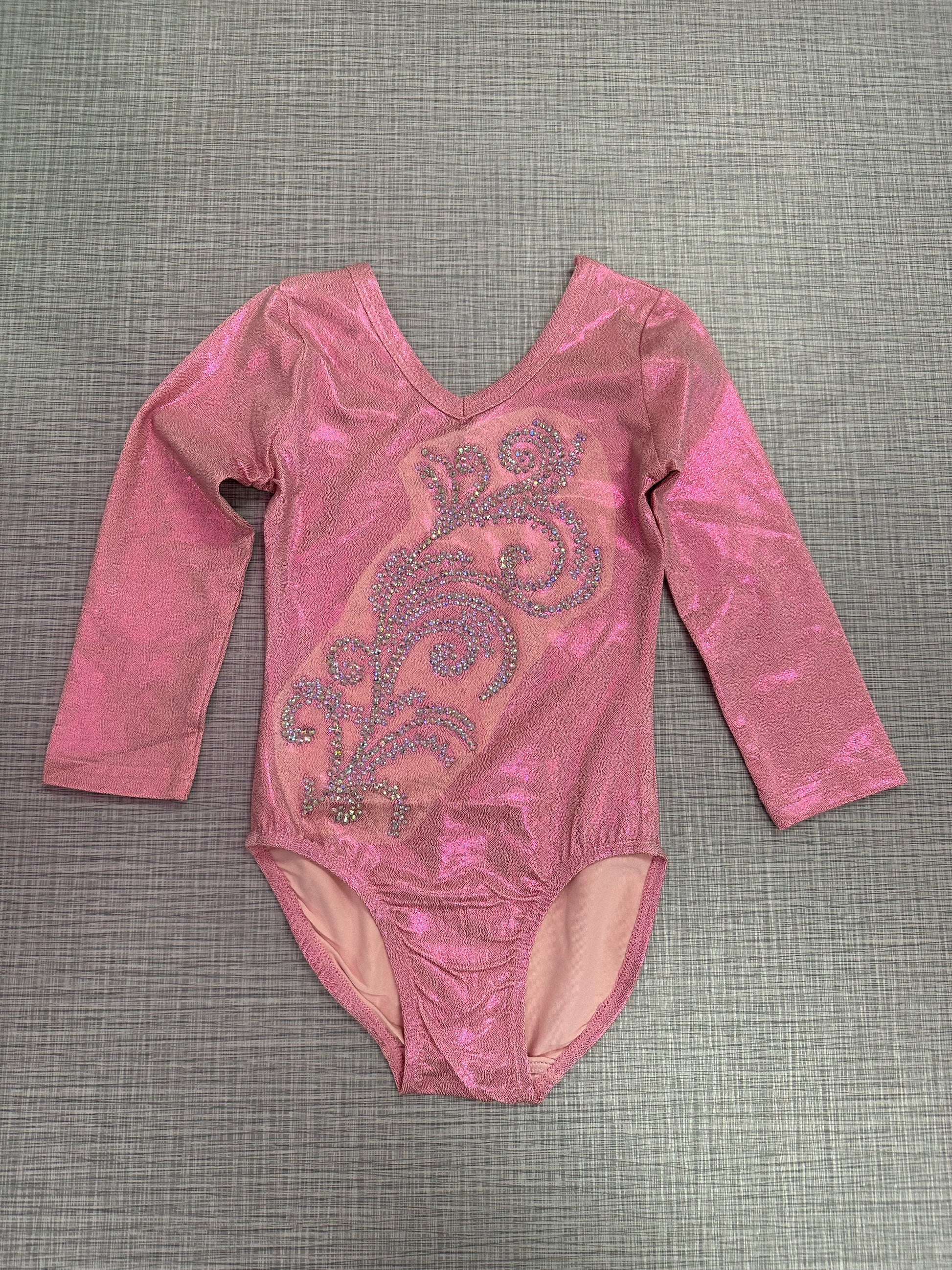 This elegant pink long sleeve rhinestone competition leotard is perfect for kids. Features a sparkling rhinestone design, comfortable stretch fabric, and a stylish fit. Ideal for gymnastics and dance performances. Enhance your collection today!