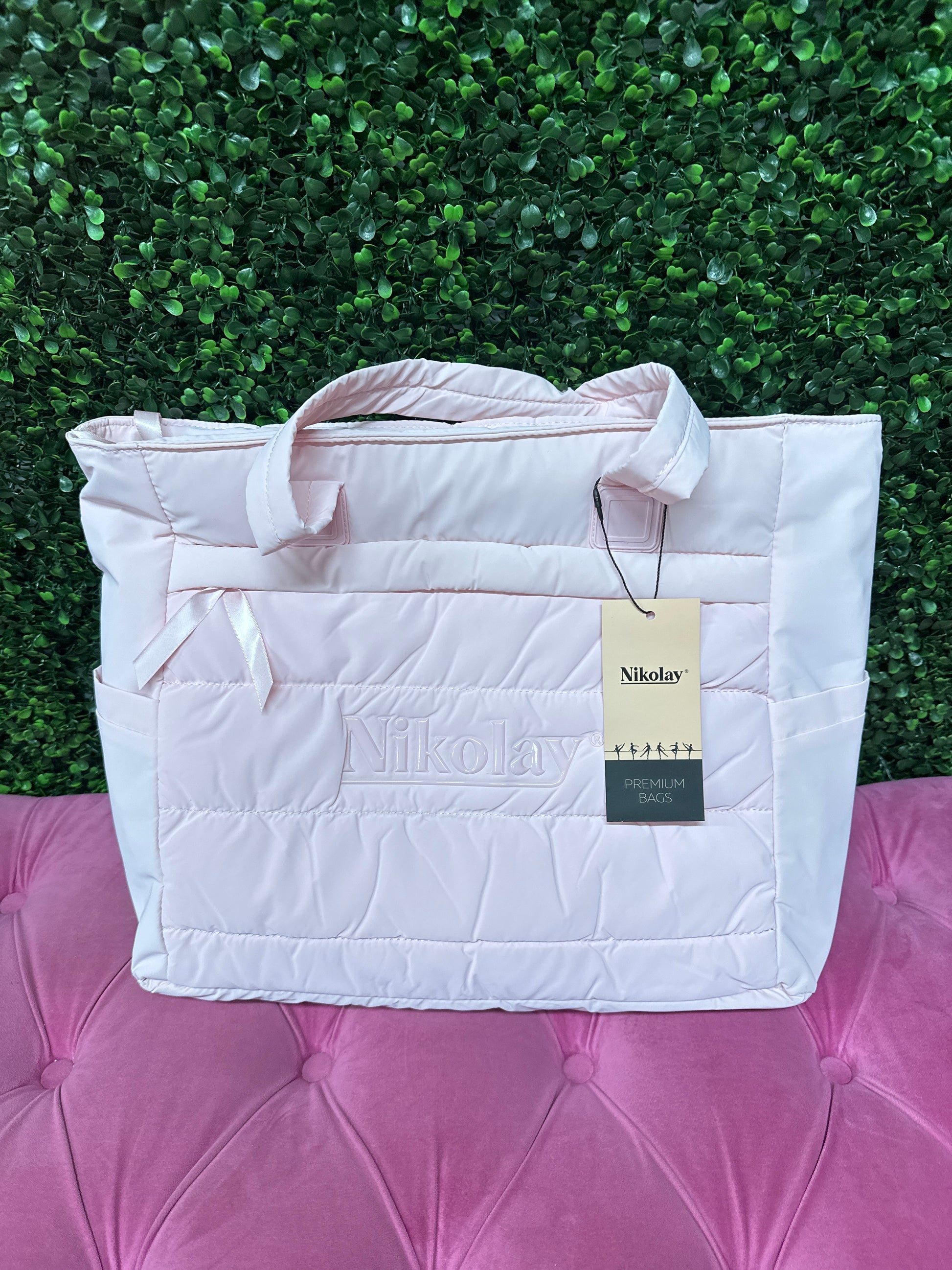 With small pockets on each side, you can securely store your cell phone and AirPods. Choose from four chic colors to match your look. The tote features a front pocket and a spacious main compartment, both equipped with zippers to keep all your dance gear organized and safe.
