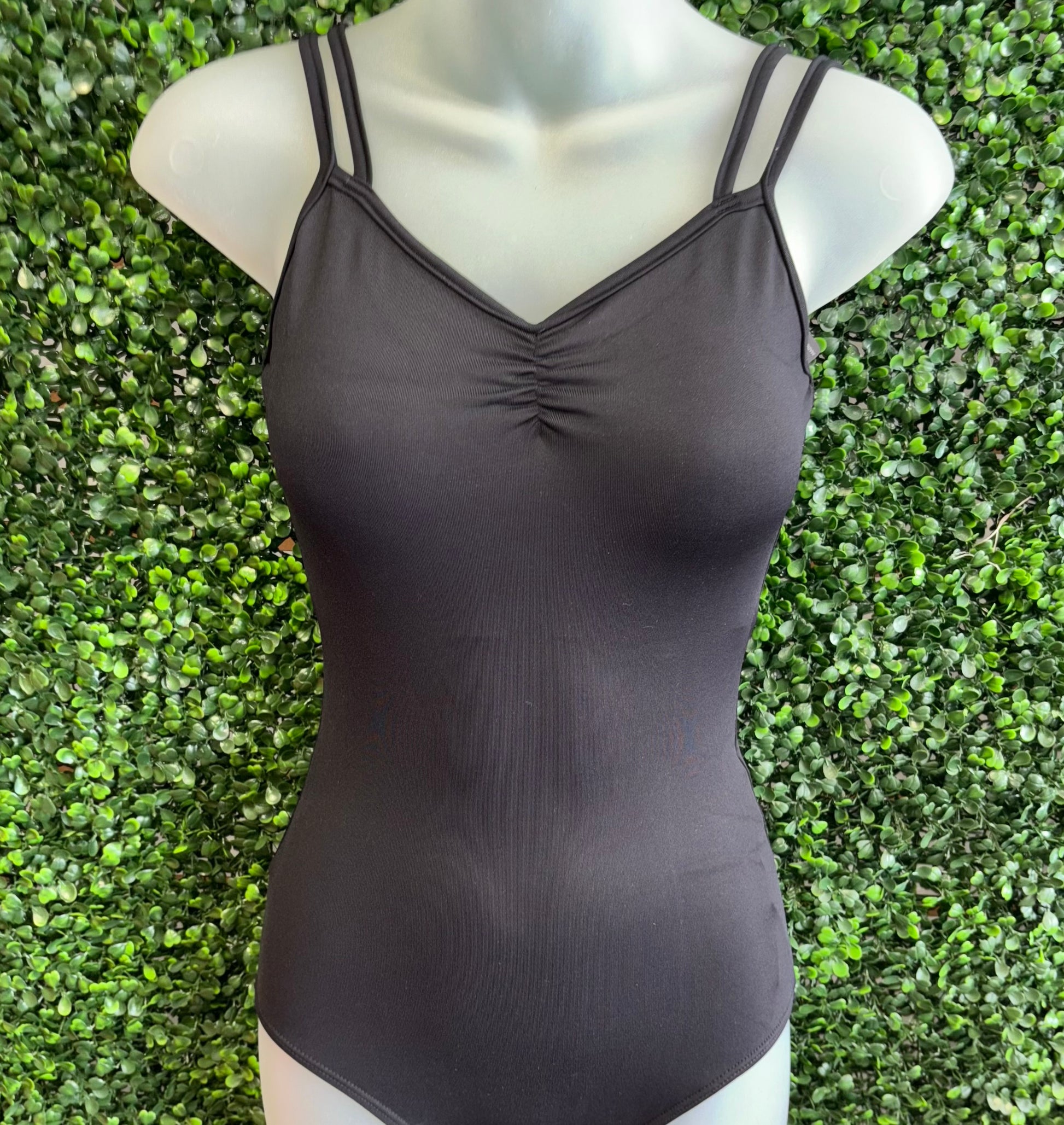 The So Danca BY27 Salina Camisole Leotard for adults offers a sleek and elegant design with a ruched front and smooth bodice that flatters every figure. Its double spaghetti straps provide gentle support, while the mesh back detail enhances breathability and adds a stylish touch. Perfect for dancers seeking comfort and sophistication, this leotard moves with you seamlessly during rehearsals and performances.