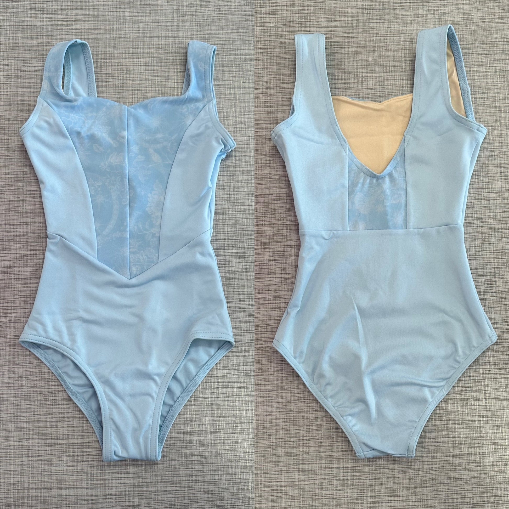 The Sapphire Leotard from the limited-edition Jewel Garden collection combines elegance and comfort. This tank leotard features a slight sweetheart neckline, mesh front panel and matching straps. Princess seams and a waist seam with a V-front create a flattering silhouette, while the high scoop back and mesh back panel add graceful details. The dyed-to-match mesh and fully front-lined colors ensure a comfortable fit, with a ballet leg line for ease of movement. The Lavender, Light Blue, and Pink colorways are elegantly printed, while the Black colorway provides a classic, solid finish. Available in child sizes only.