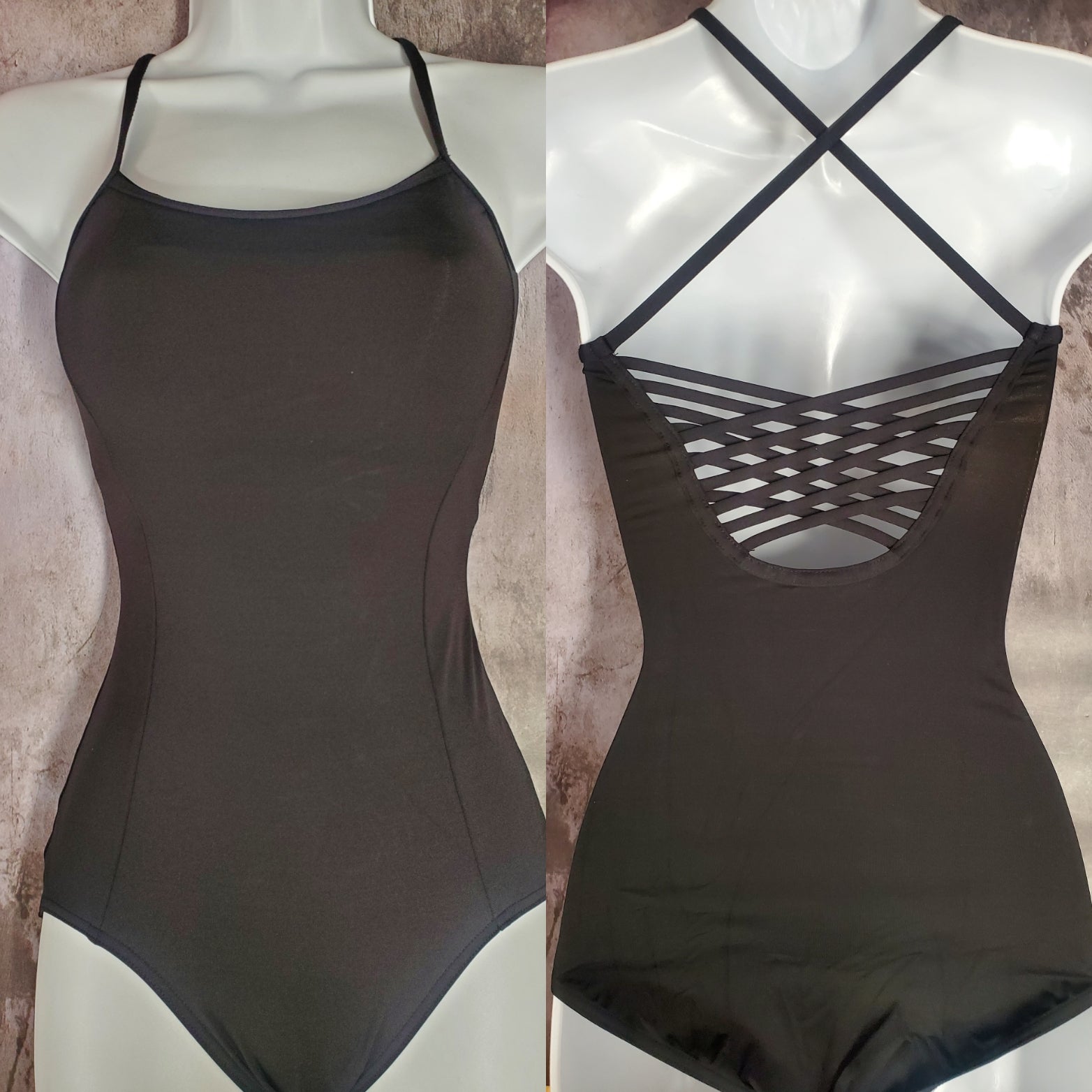 Features a scoop back designed with tight lattice criss-cross straps that capture attention. Made of a Meryl® nylon and spandex blend that is soft and resilient. Princess seams create a more tailored fit that closely follows the shape of the dancer.