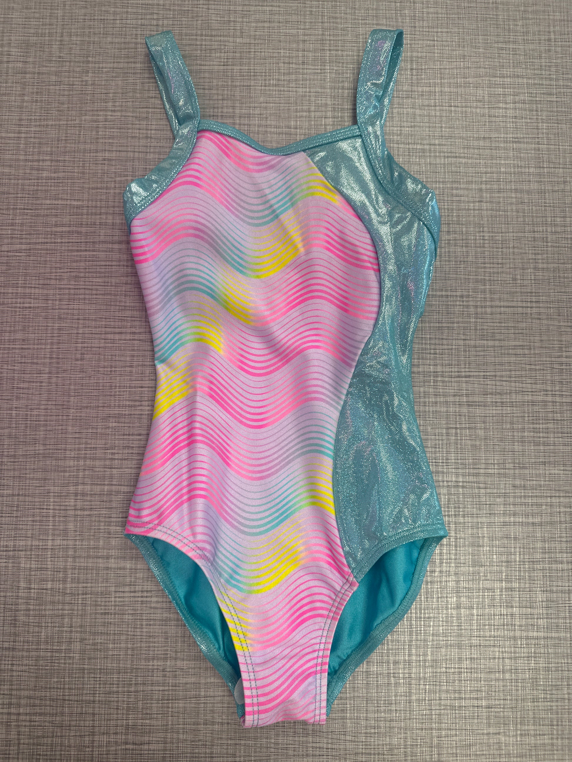 Make waves in the Surfrider Leotard from the Sunset Wave collection. Crafted from a blend of Nylon and Lycra, this camisole leotard features wide adjustable straps for a customized fit and a flattering scoop front. The unique S-shaped seaming detail with a vibrant printed panel adds a dynamic touch, while the low scoop back creates a sleek, elegant silhouette. Perfect for capturing the energy and colors of the sunset, this leotard is ideal for performers looking to stand out.
