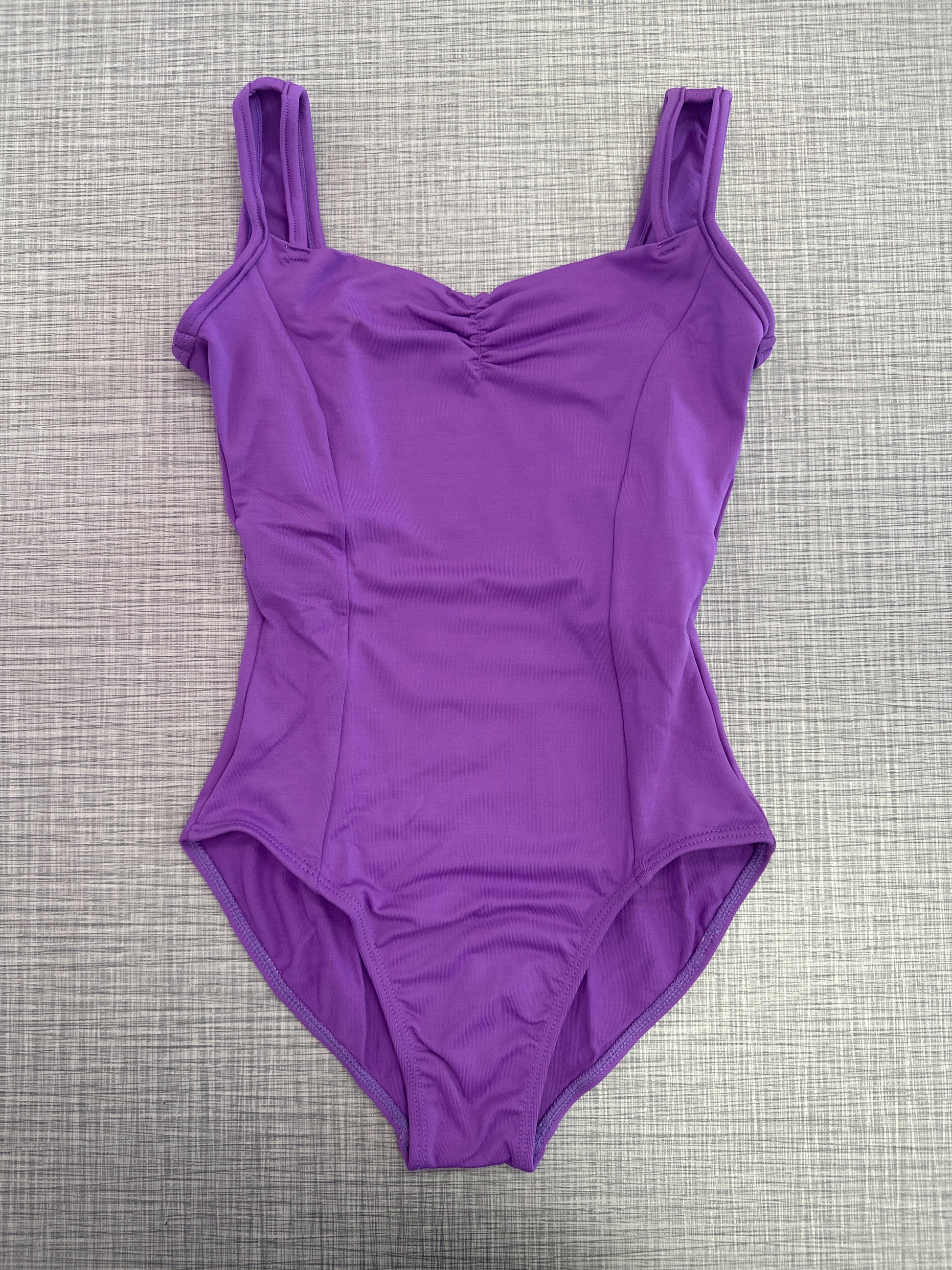Clean in front, wow in back. India’s double straps frame the shoulders while a wide low scoop lets your port de bras breathe. The smooth microfiber hugs without squeezing, so you can focus on combinations—not your leotard. Minimalist, flattering, and totally rehearsal-ready.
