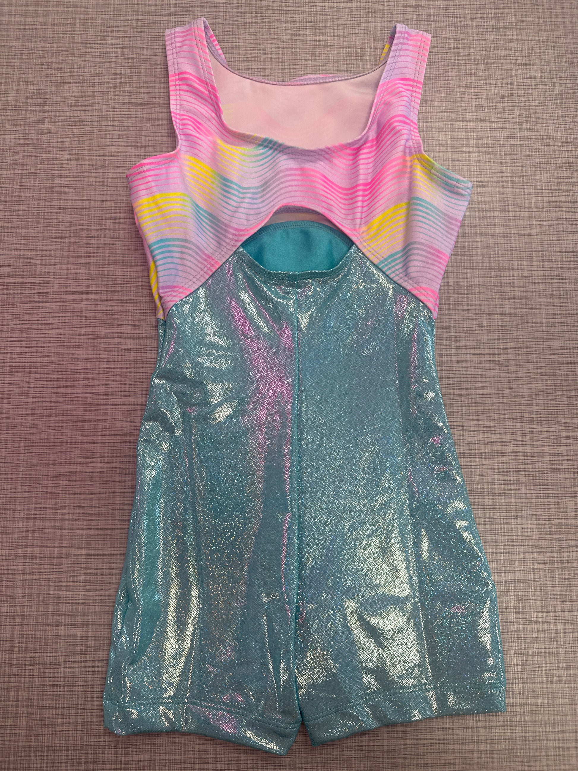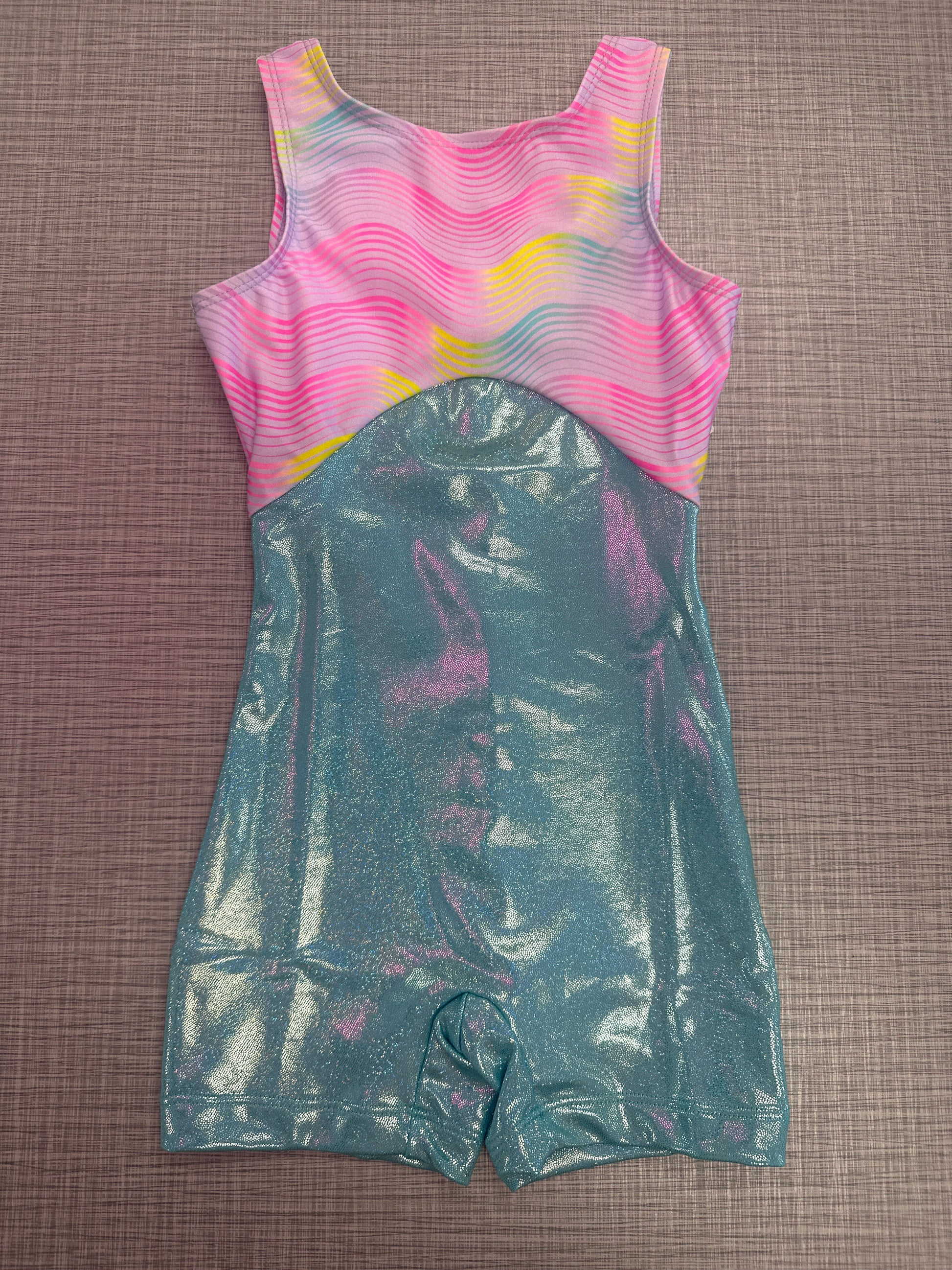 Ride the wave of style and performance in the Tidal Biketard from the limited edition Sunset Wave collection. This sleek tank biketard, made from a blend of Nylon and Lycra, features a scoop front neckline and bold printed yoke on both the front and back. A playful peekaboo opening at the back adds a touch of flair, while the fitted design ensures comfort and flexibility.