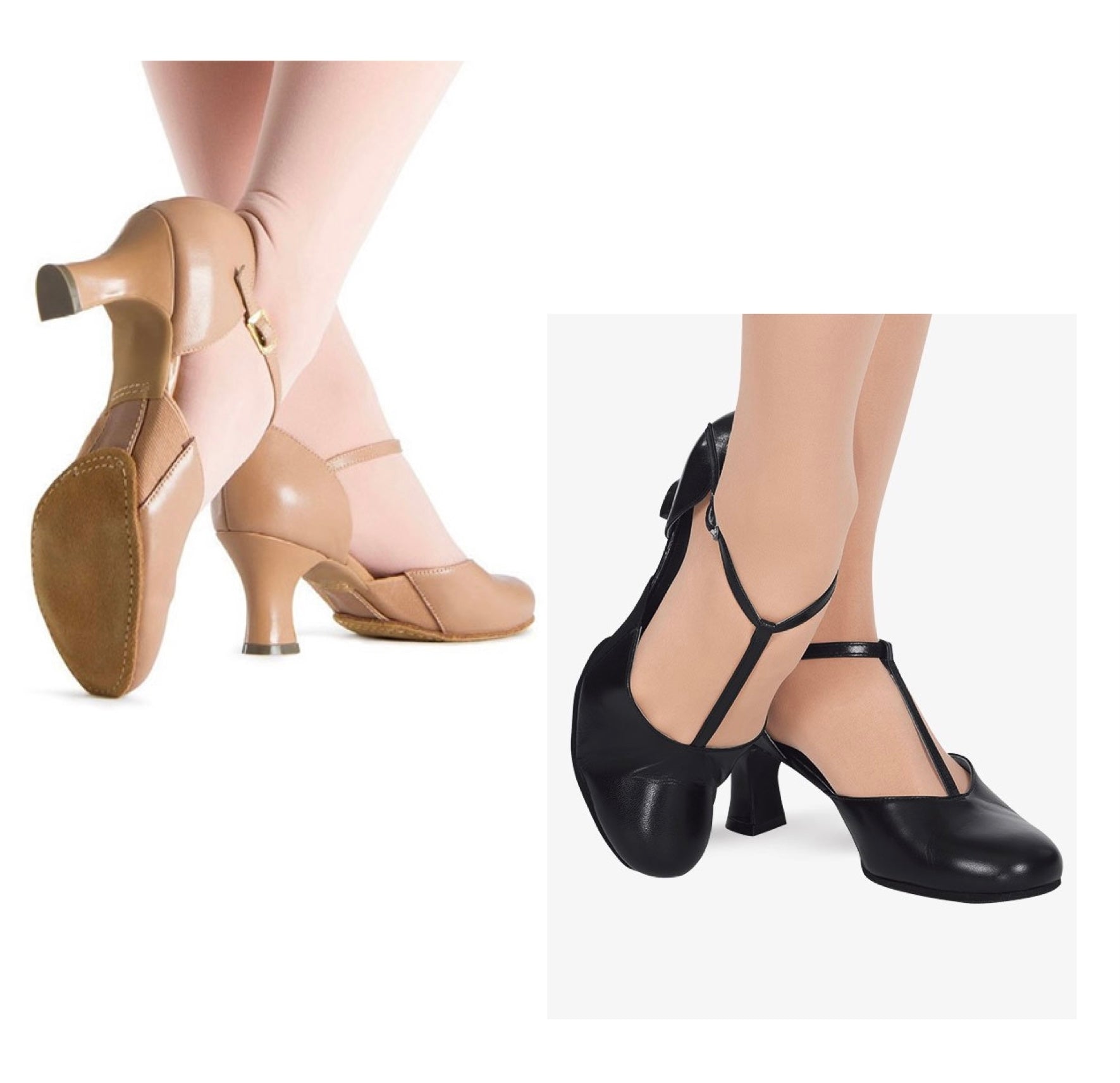 The Splitflex is a versatile T-bar strap leather character shoe suitable for character dance and interdisciplinary demi character work. It features an elasticated panel underfoot, providing flexibility and enabling the shoe to move with the foot in demi and while pointing the toes.